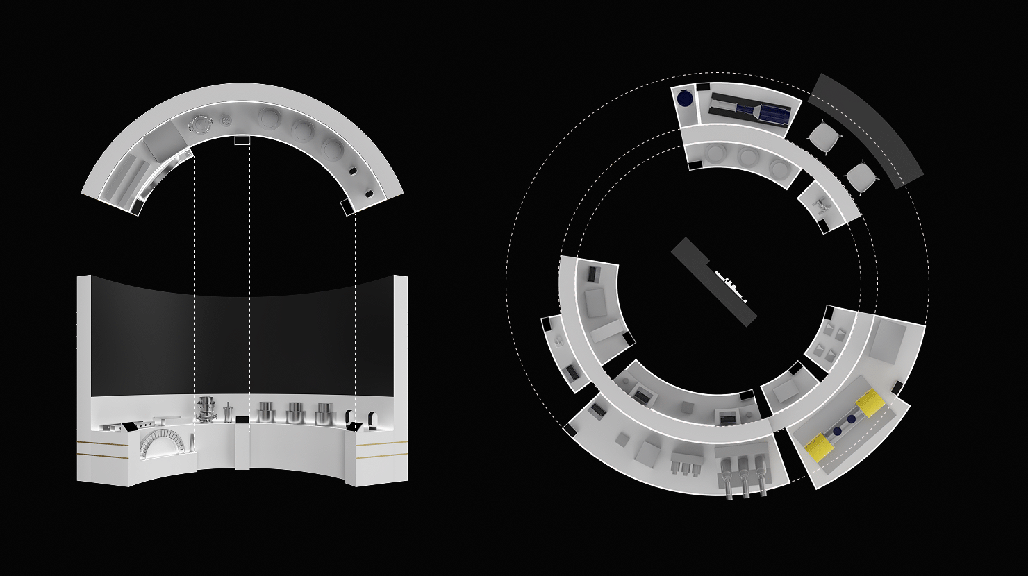 规划方案获批后,我们提出了几种展台风格方案。最终,我们倾向于采用极简主义设计,以突出展品并与活动主题相契合。.