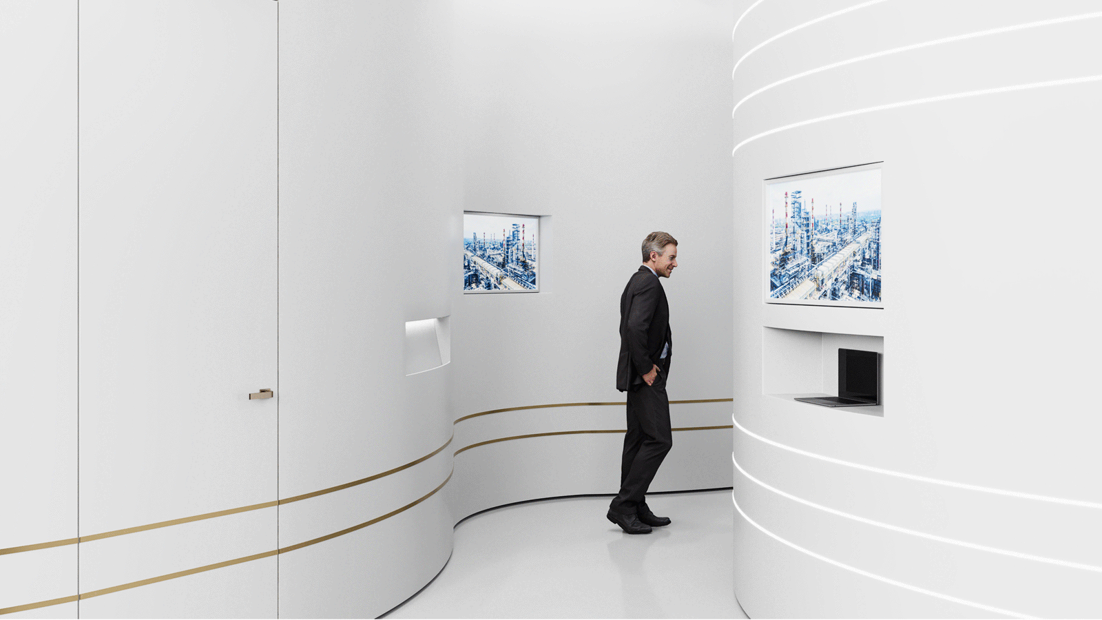 在分析了客户所在的行业之后,我们决定以仿生学的形式来开发这个概念,采用流畅、简约的形状和浅色调方案,并以青铜色的嵌件作为点缀。.