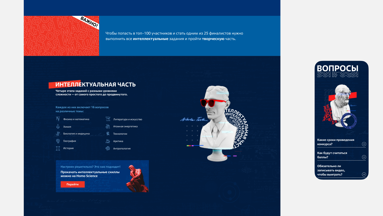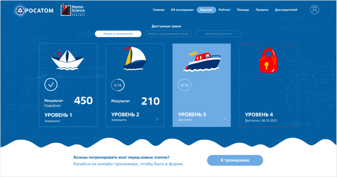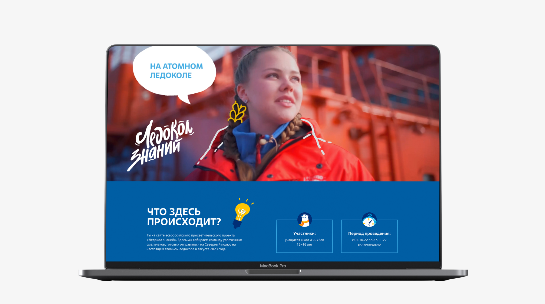 我们为«知识破冰之旅»项目打造了一套品牌形象,包括品牌标识、参与者纪念品、礼品海报、明信片、社交媒体图片、展示品和视频。在此,我们想重点展示为这项全国性教育项目“知识破冰之旅”创建的网站。»