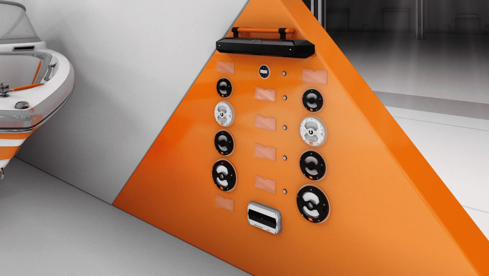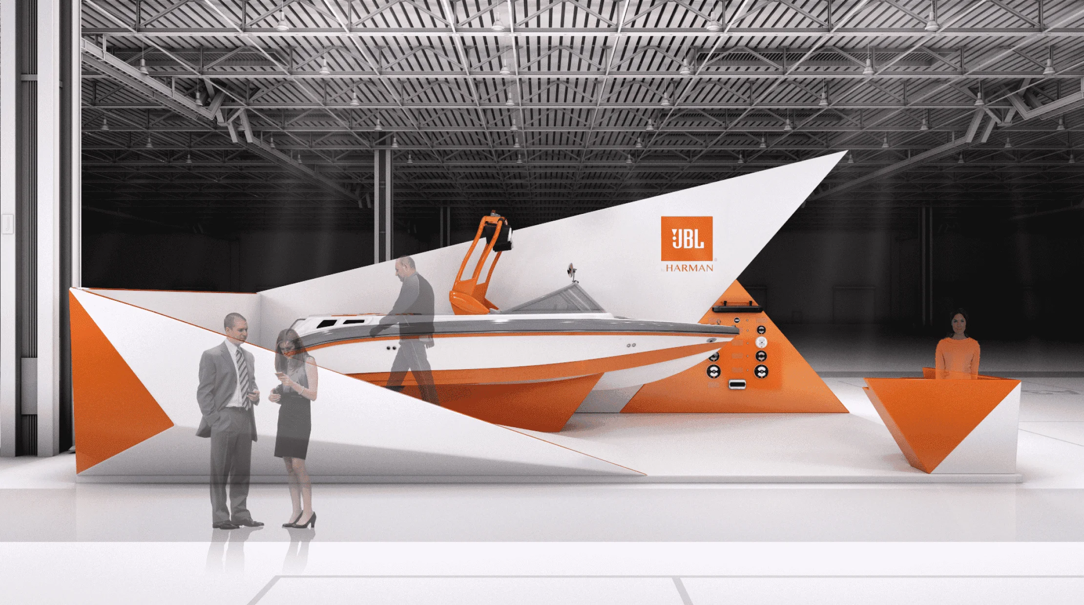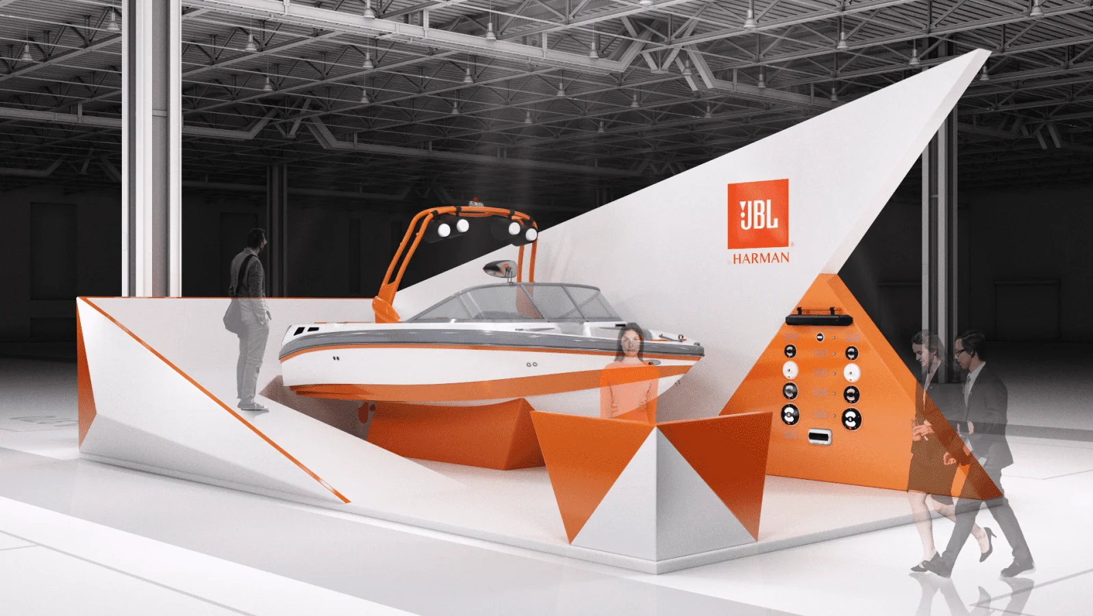 JBL是世界知名的音频设备制造商之一。我们的目标是为游艇展设计一个展位,以展示JBL Marine的产品。.