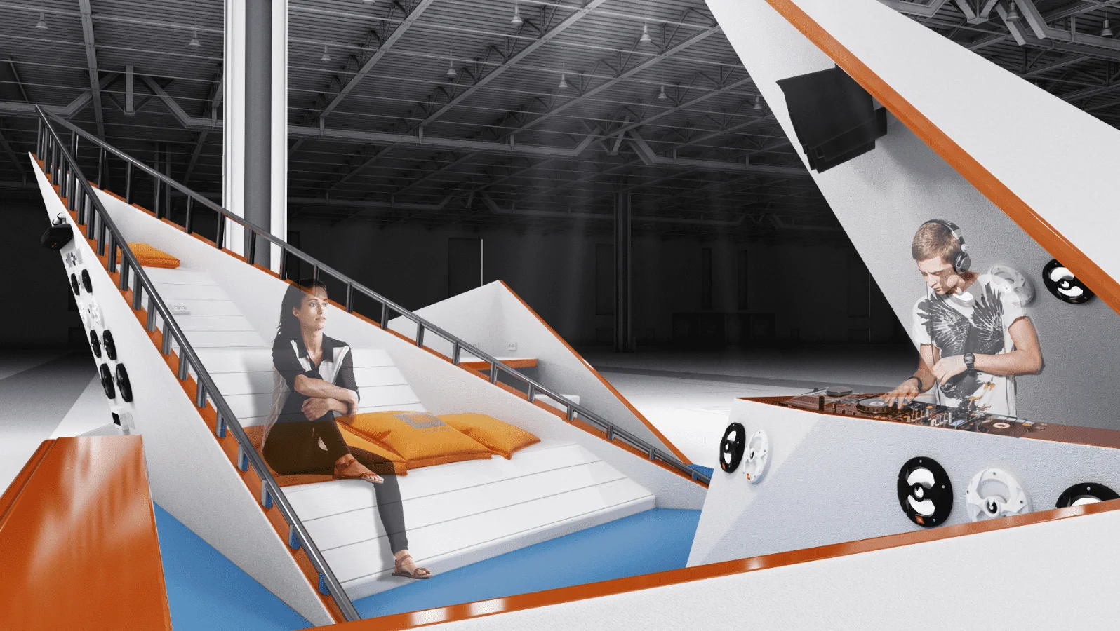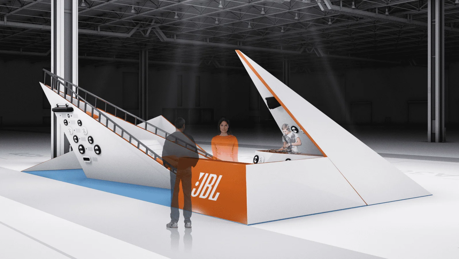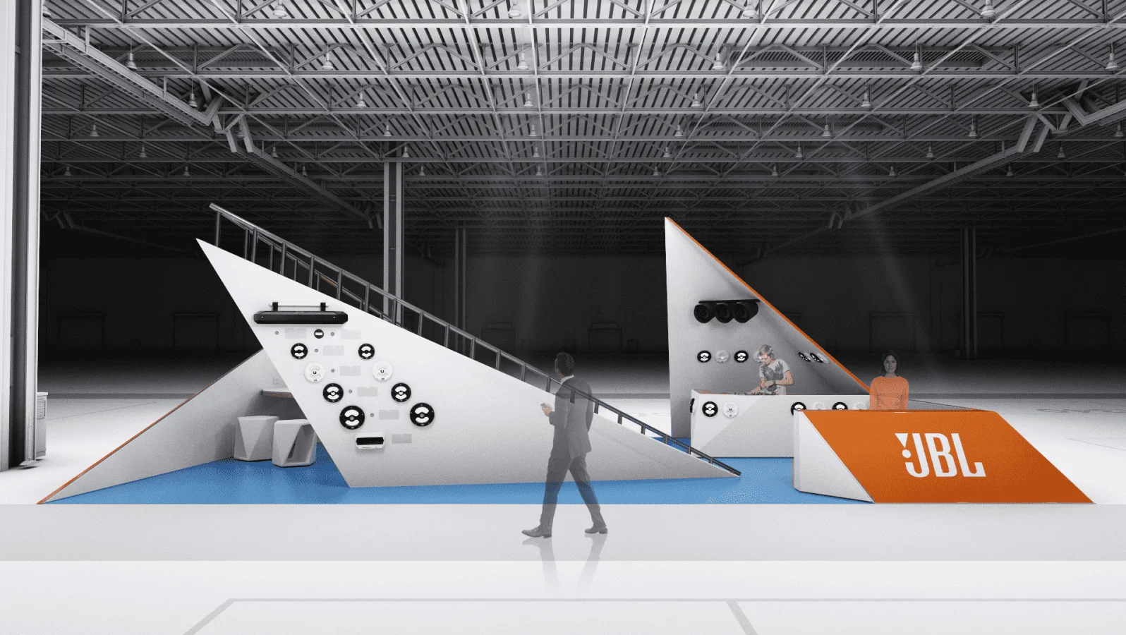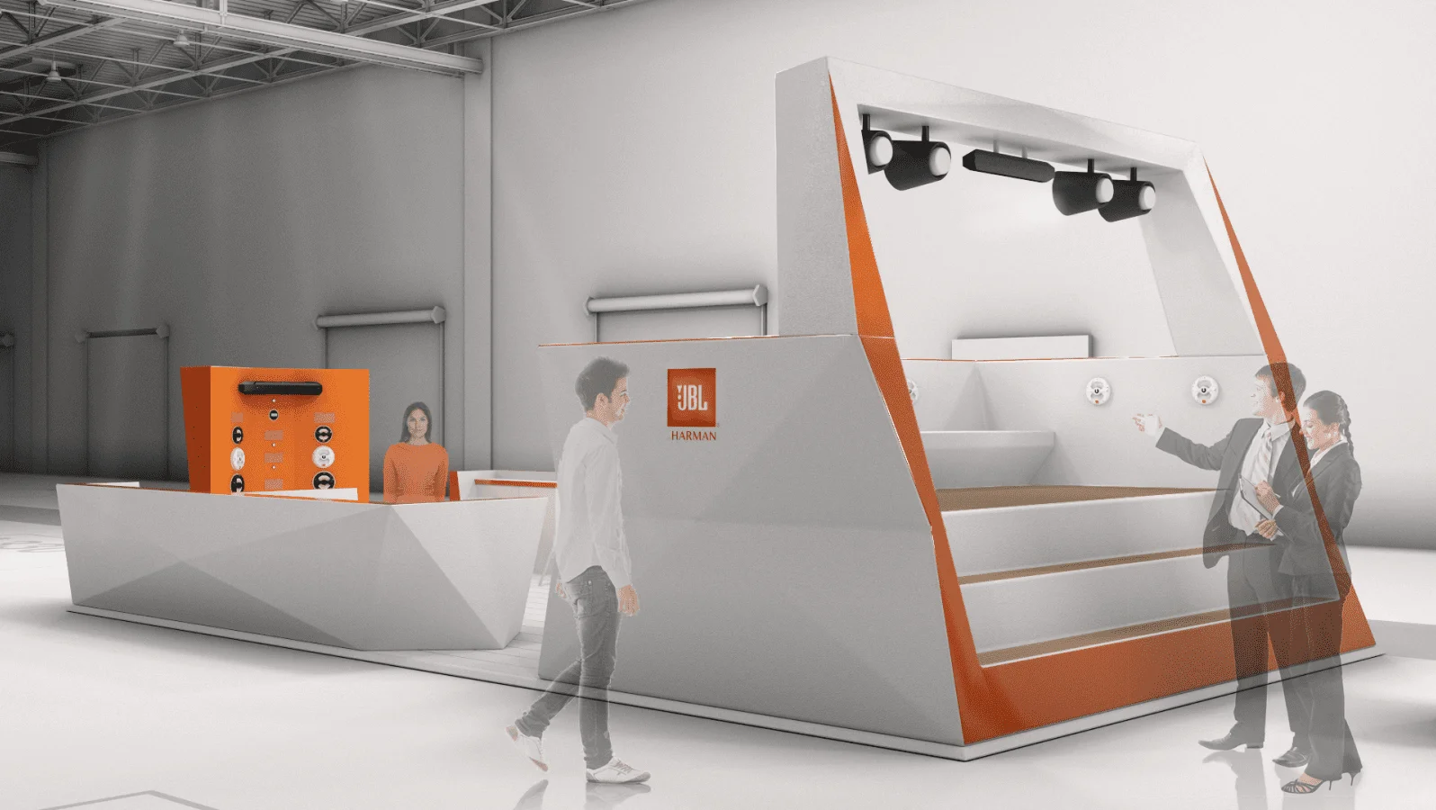 最终设计出了三款时尚醒目的展台方案,既符合预期风格,又能有效地展示 JBL 产品。.