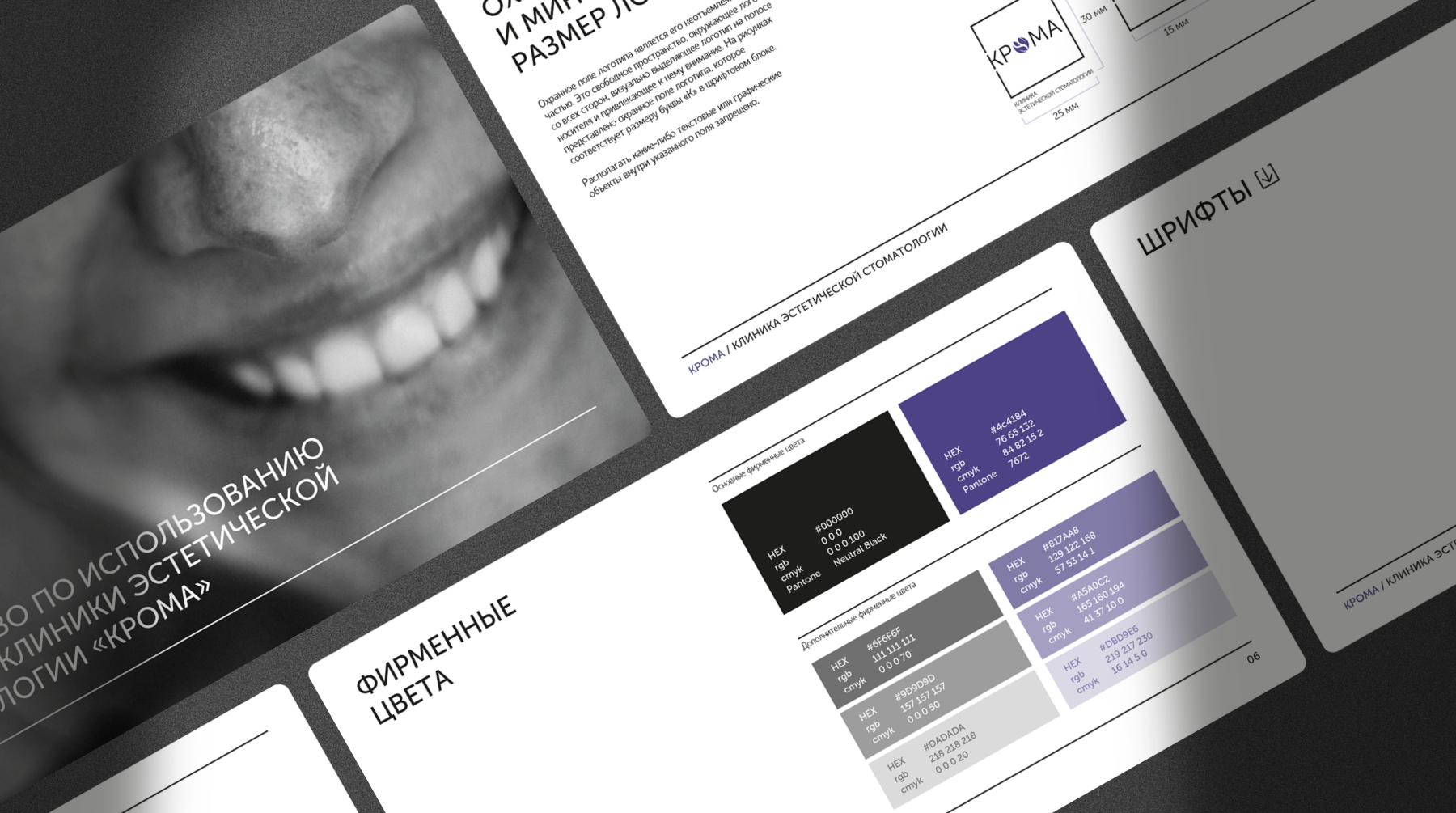 我们为«Kroma»美容牙科诊所设计了标志和设计规范。»