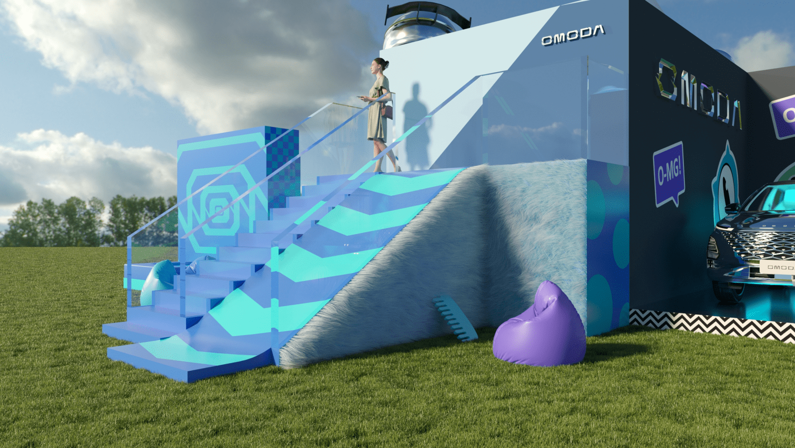OMODA是一个年轻而充满雄心的汽车品牌,它将自身定位为创新和未来主义。我们希望打造一个充满活力且别具一格的展台,吸引来宾的目光,让他们感觉仿佛置身于一场激动人心的太空冒险之中。.