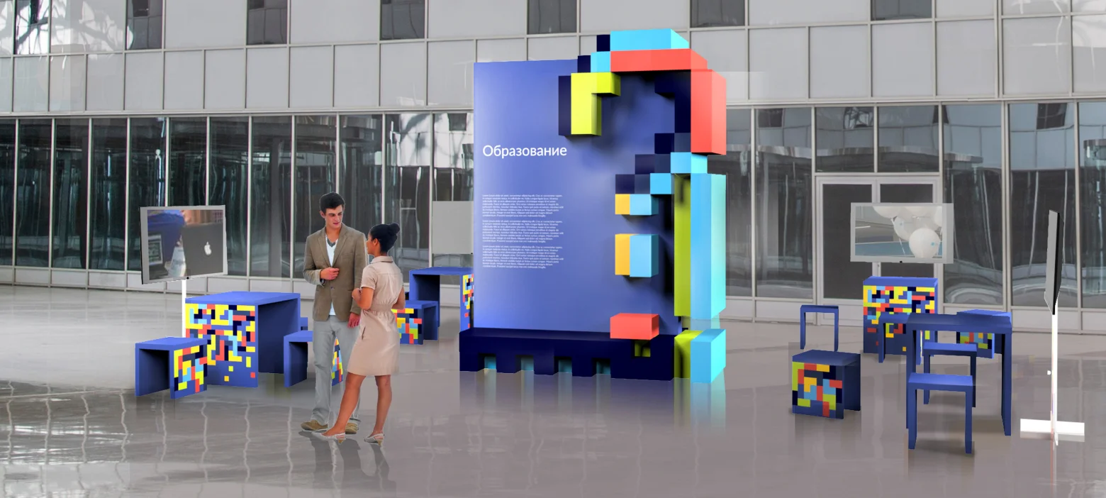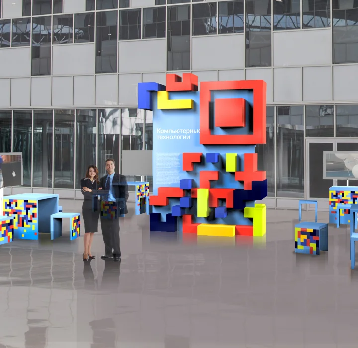 媒体区、带舞台的中庭、创业区以及几个主题区的设计:教育、政府、基础设施、医疗保健、计算机技术、制造业和农业。.