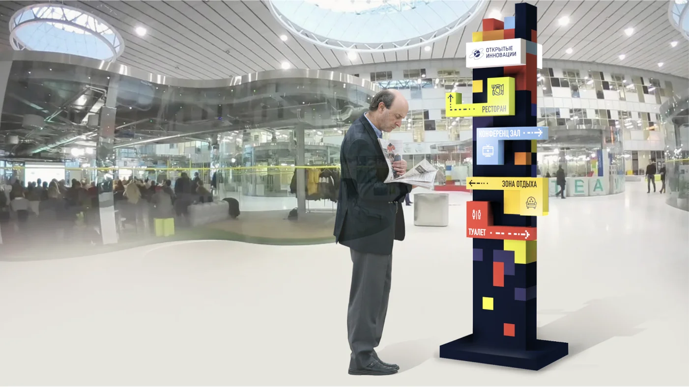2019 年,我们参与了«创新发现»论坛的设计概念,设计了导航系统和展台。.