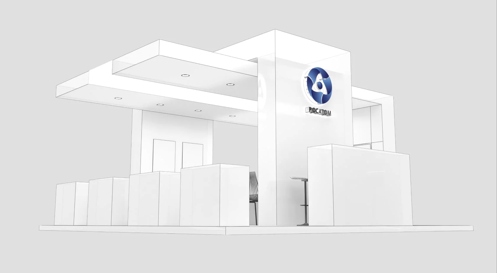 展览空间的设计理念体现了公司的开放性;笔直清晰的线条强调了公司对自身选择道路的信心,而配色方案则反映了核能固有的纯净性。.