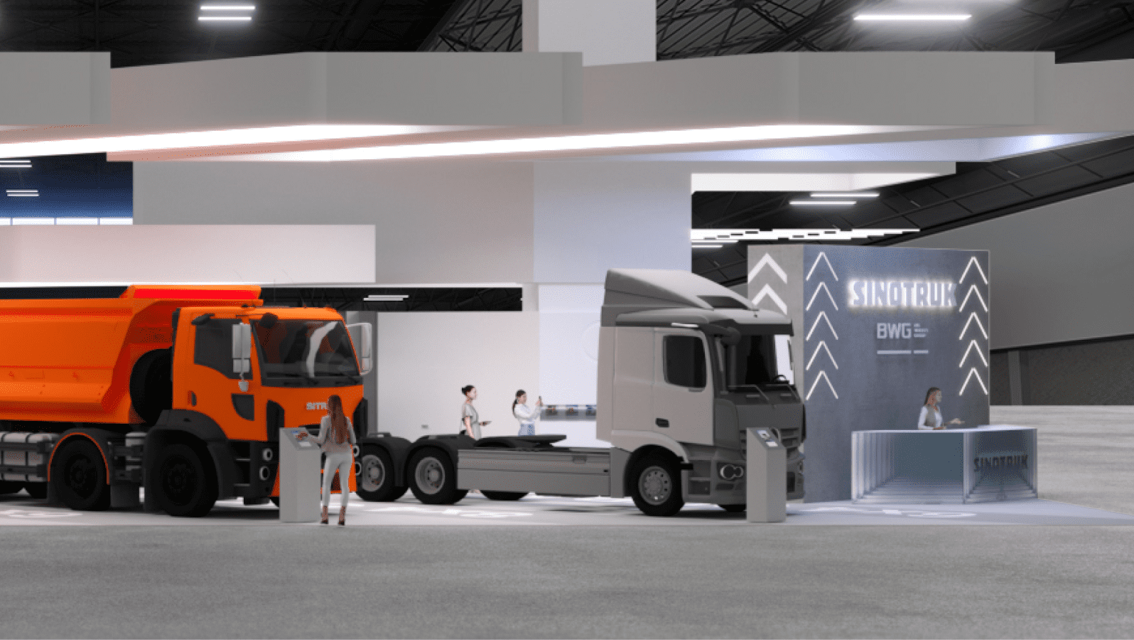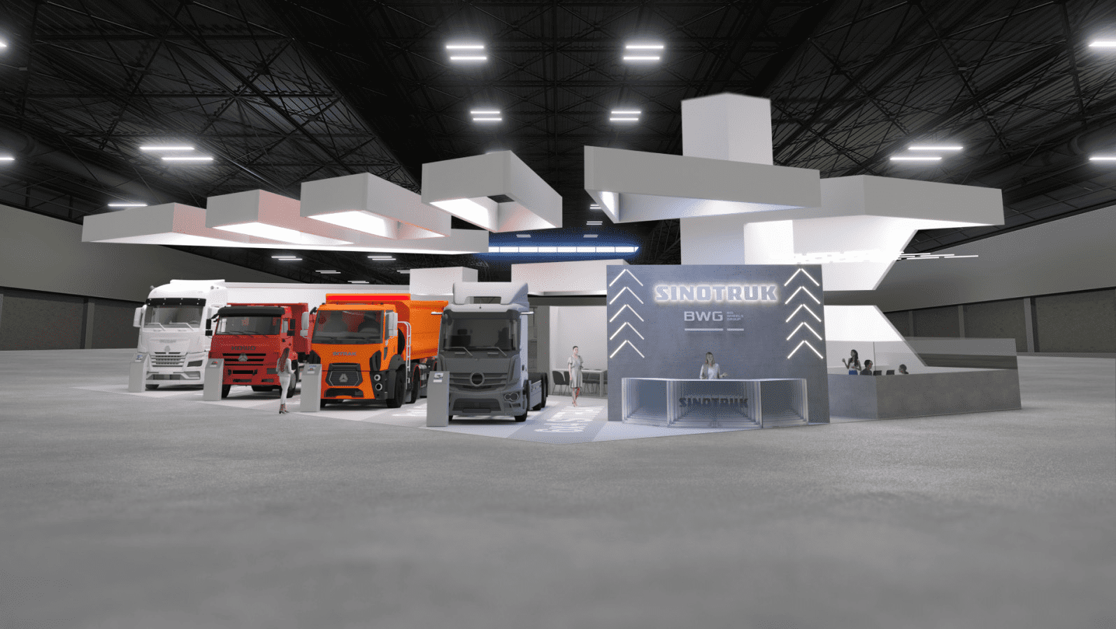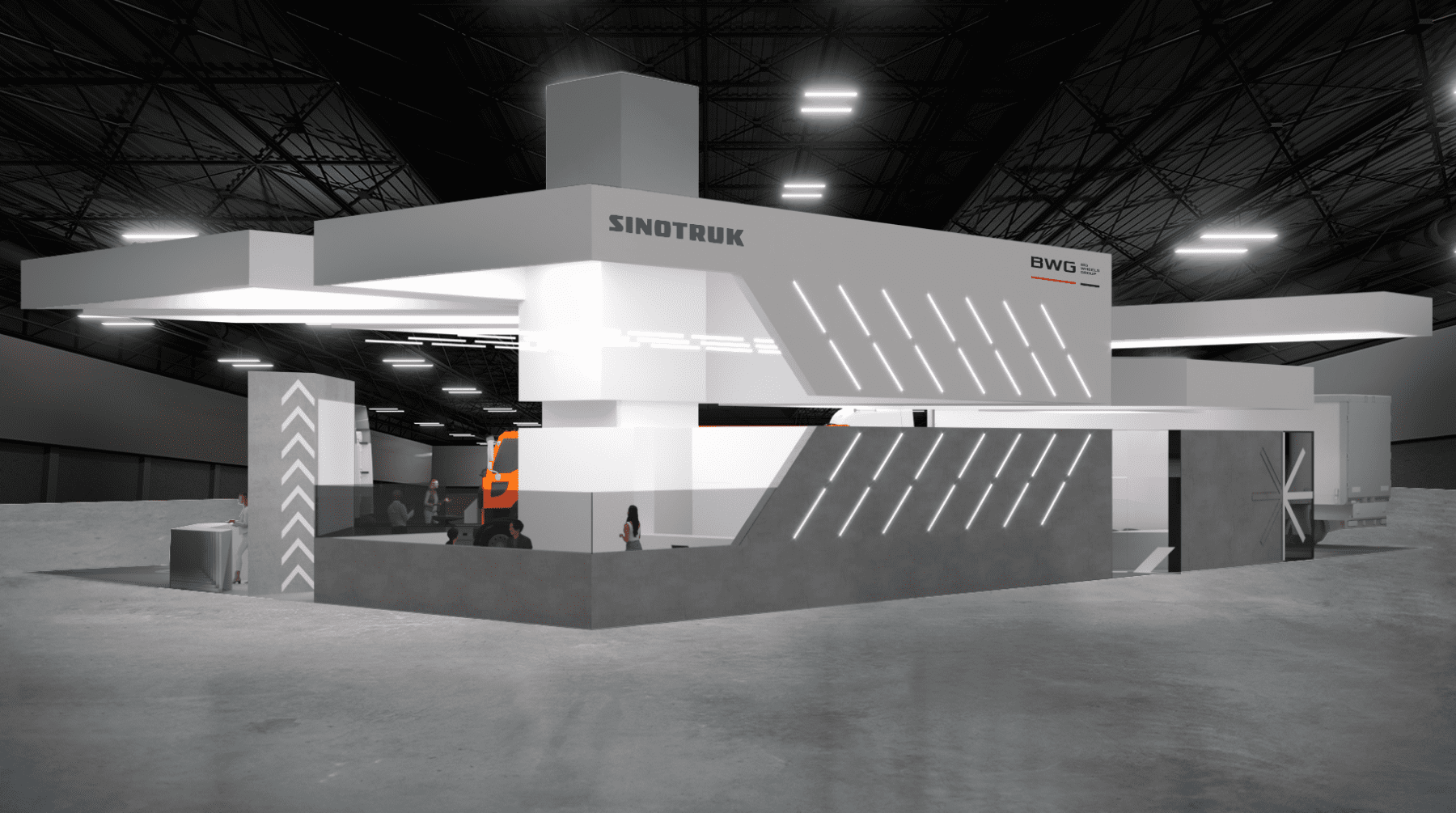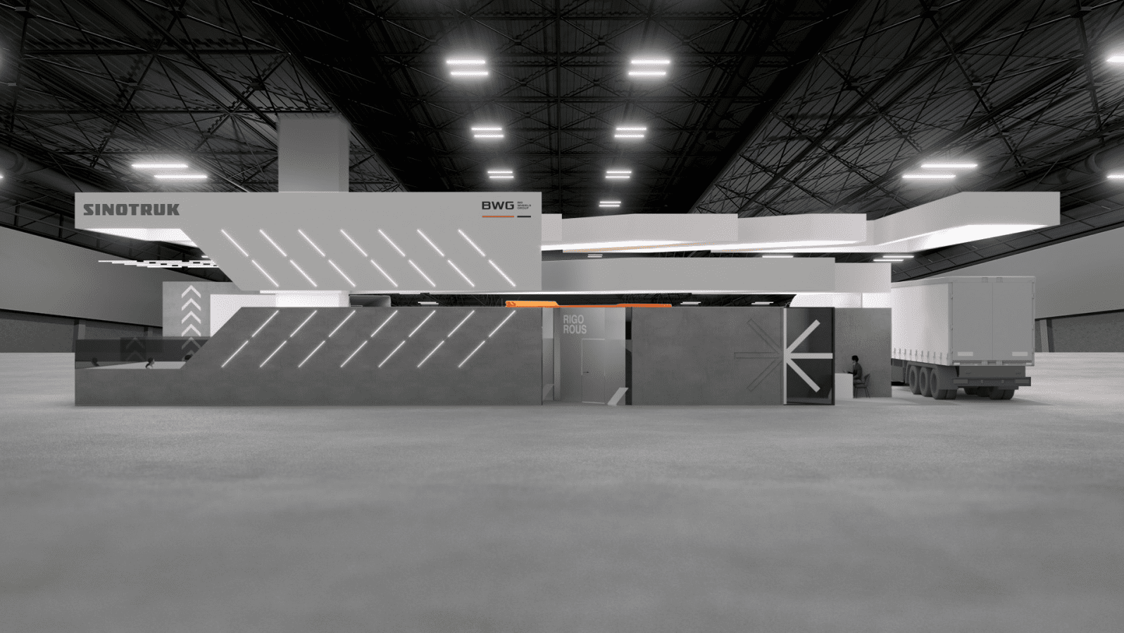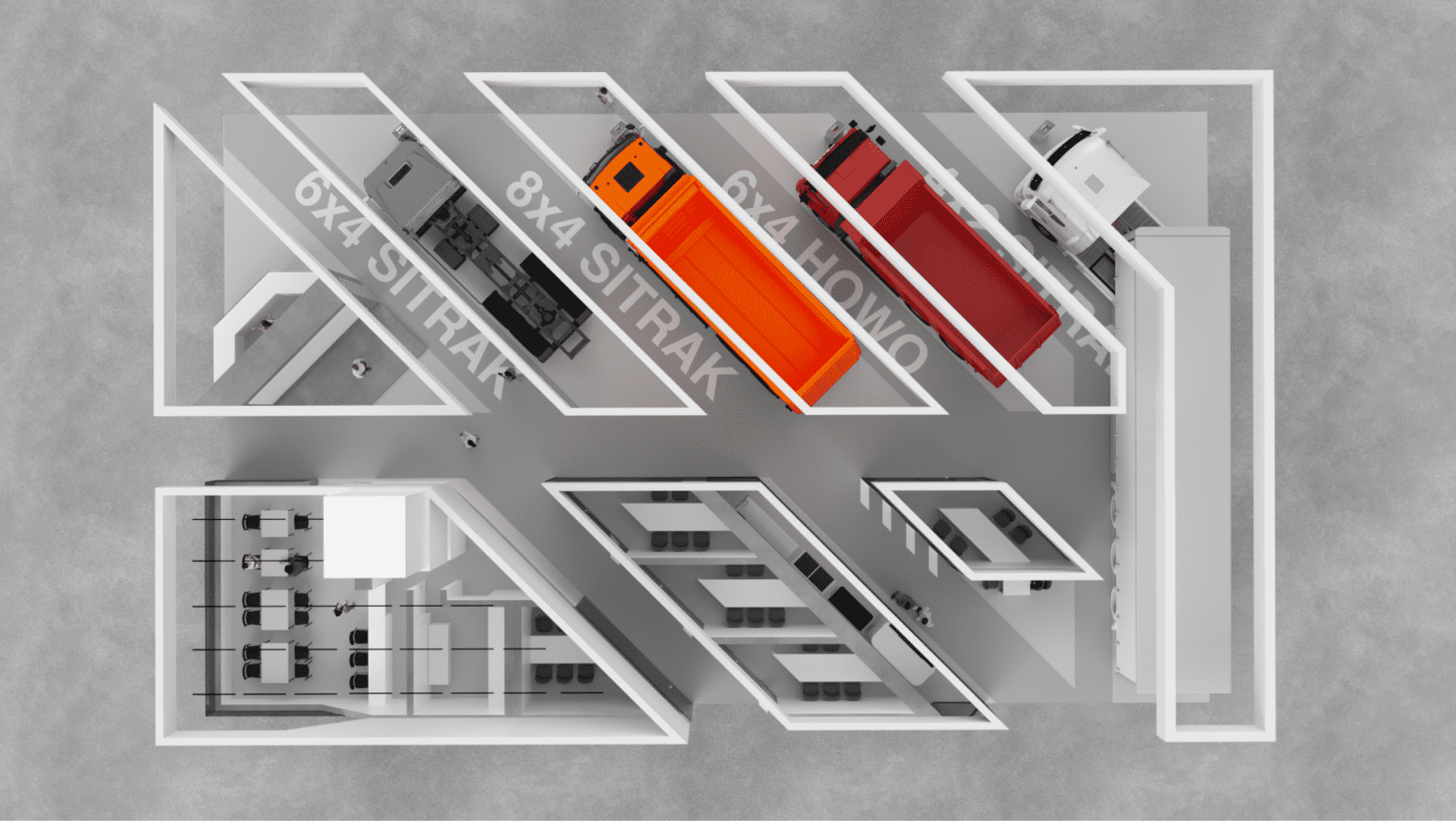 中国重汽是一家中国卡车制造商。我们的任务是设计一个展台,帮助该公司在新市场展示其产品。.