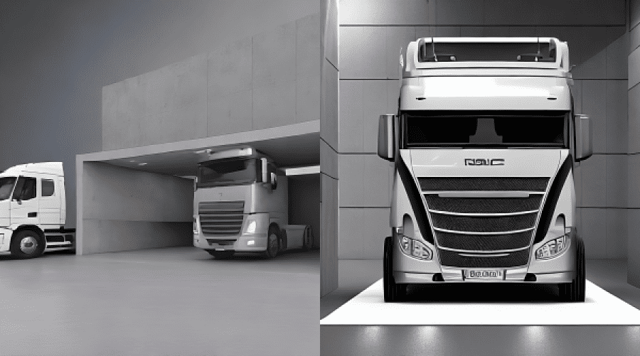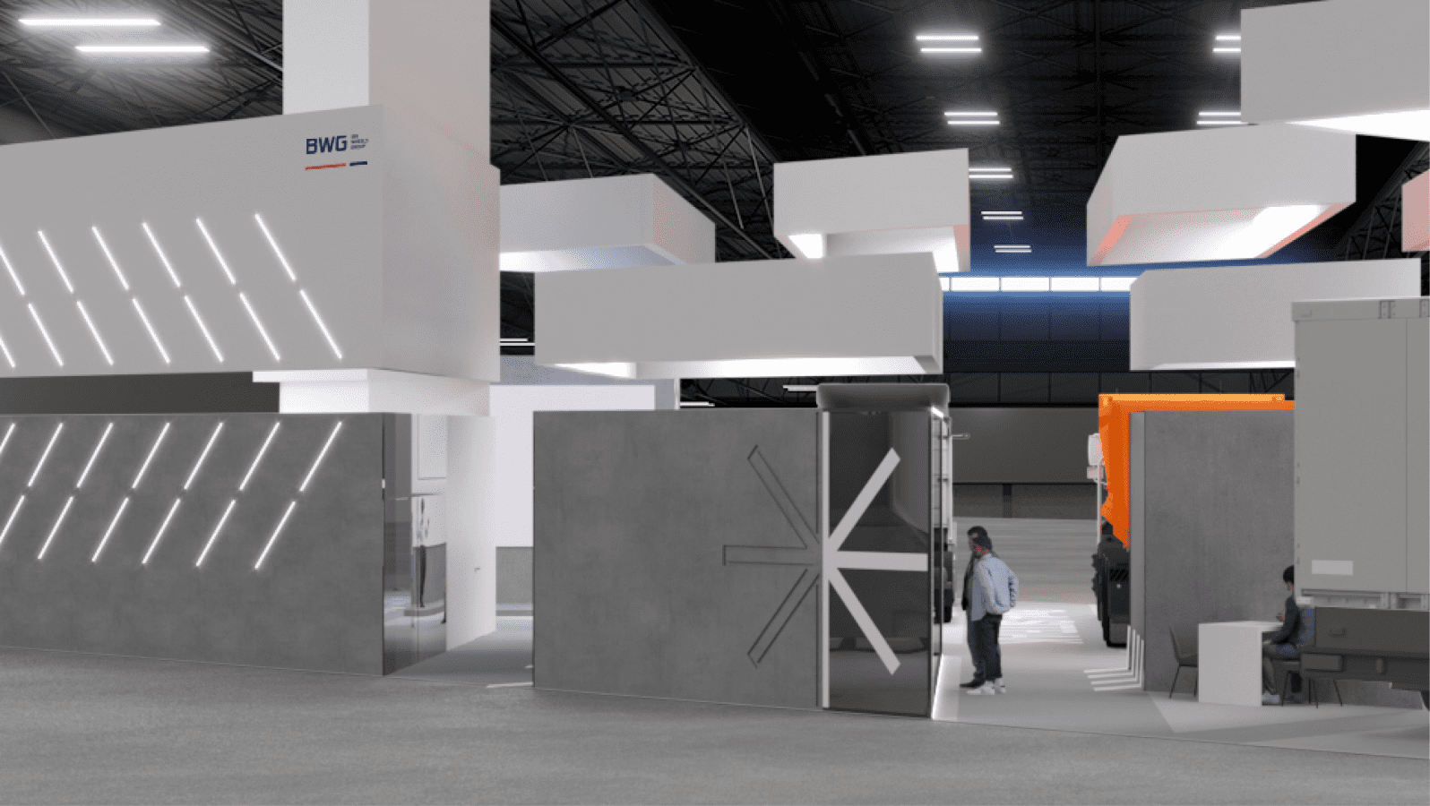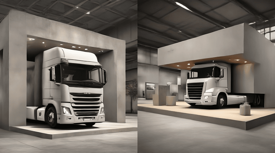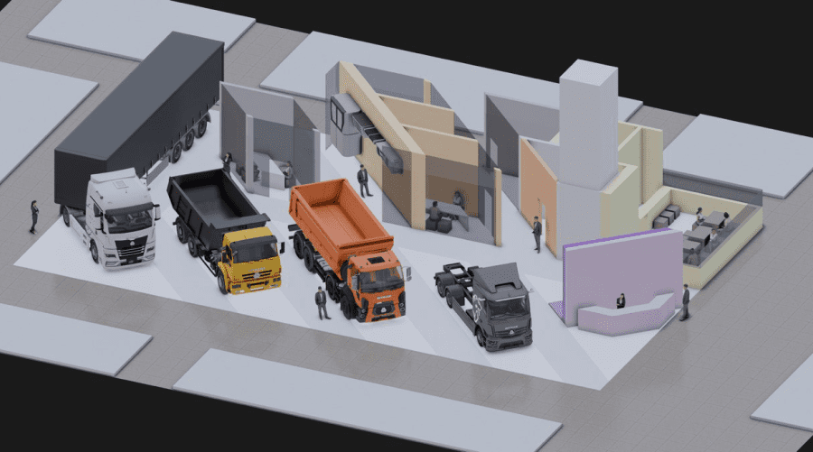 经过风格分析,我们为展位选择了粗犷极简主义的设计方案,以突出卡车的工业感和现代感。我们利用神经网络生成了初始草图,从而能够提前确定未来展位的大致外观以及所选方案的合理性。.